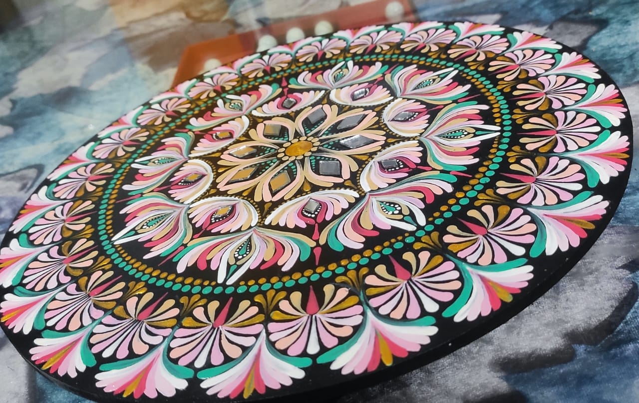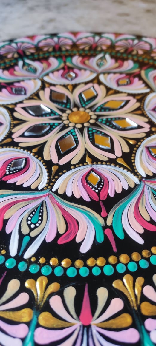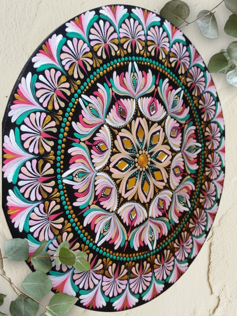 Embrace tranquility and artistic flair with this enchanting Pink Dot Mandala painting, meticulously hand-painted on a sturdy MDF board. This captivating piece features an intricate mandala design composed of delicate pink dots, harmoniously arranged to create a visual symphony that draws the eye and calms the spirit.
